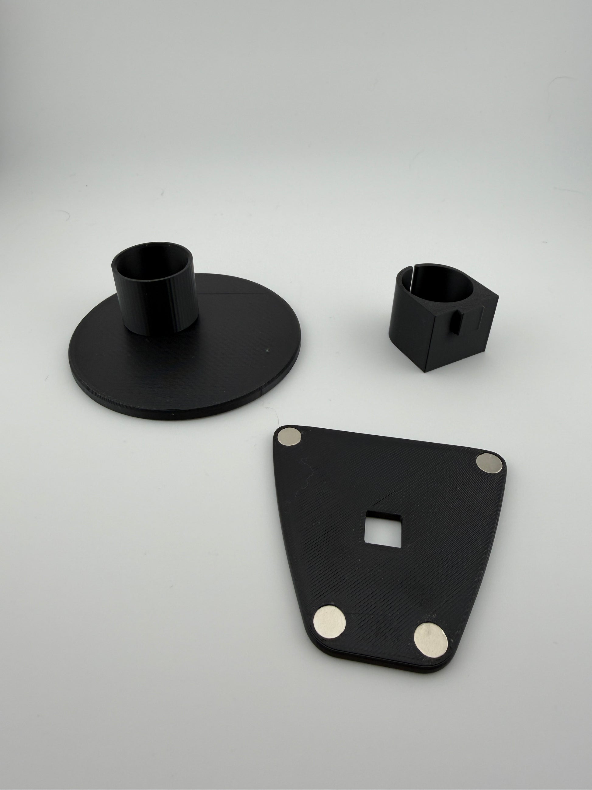 The Offset Base and Magnetic Backer come as a set. The Backer can be adjusted up and down along the pole by simply sliding it. Slide backer over the top of the Pole and place it anywhere you'd like then click the target of choice and cover option directly to the backer.