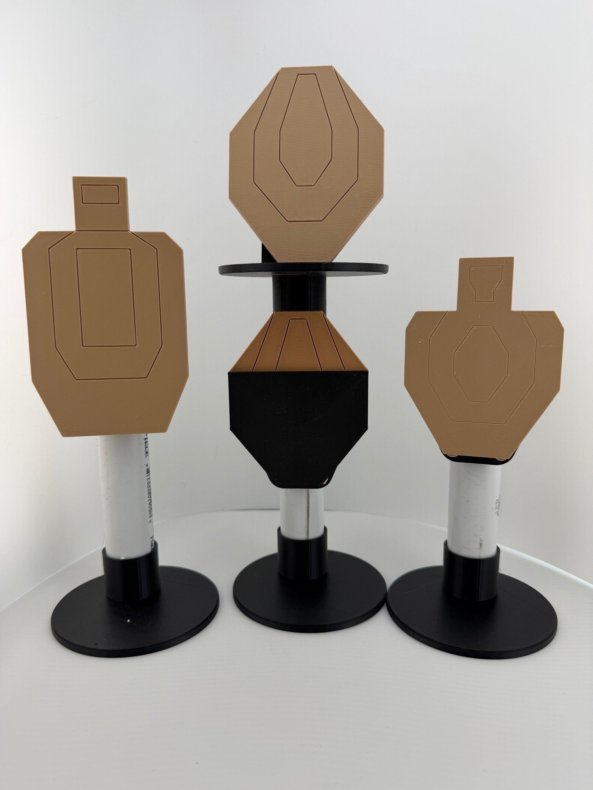 We chose to use the same poles (or 3/4" PVC) we use for movement and barriers as the stands for your Dry Fire Targets since many shooters already have them. If not they're a great addition to the game, or simply grab some 3/4" PVC.